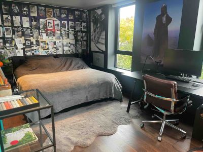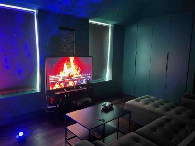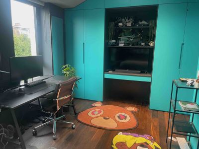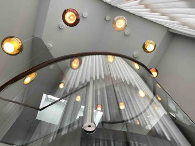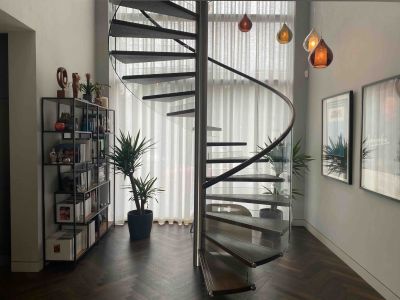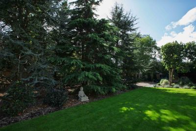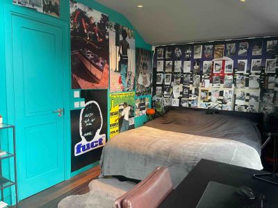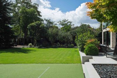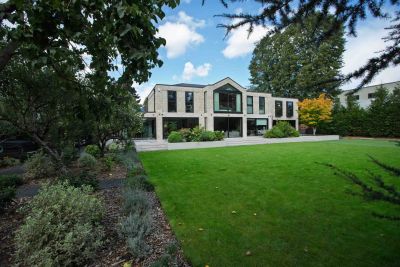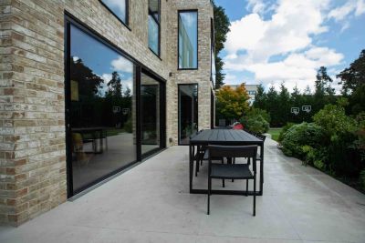 Open plan and spacious, high spec, a lot of large windows letting in huge amounts of light, and allowing the incredible garden be its background. It is half an acre plot, and there is a shooting studio on site. There are 5 bedrooms, large open plan kitchen with cooking island, dining area, living area with a fire place and spiral staircase. Home office.