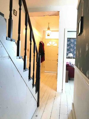 A Victorian residential 4 bedroom home with quirky interiors. Dated wallpapered rooms but also modern rooms. There is a large outbuilding with artist studio / workshop.